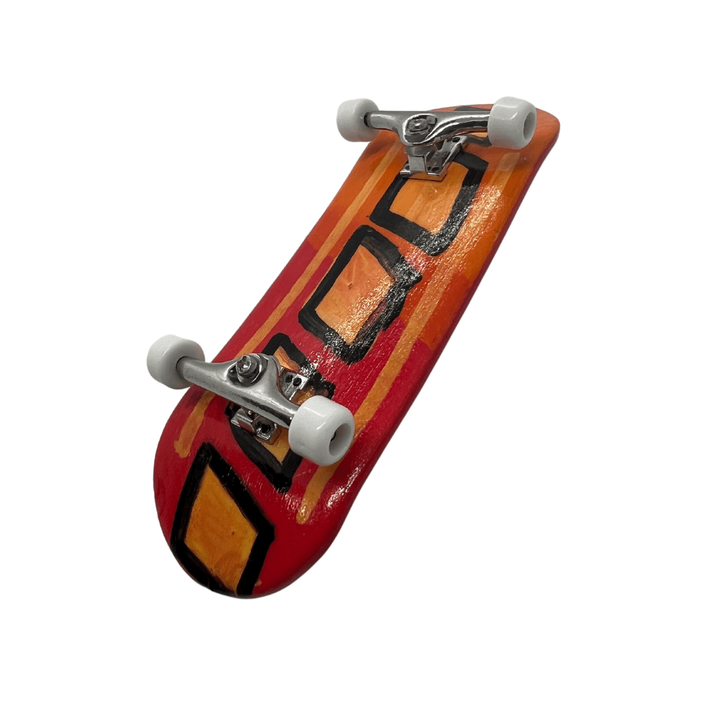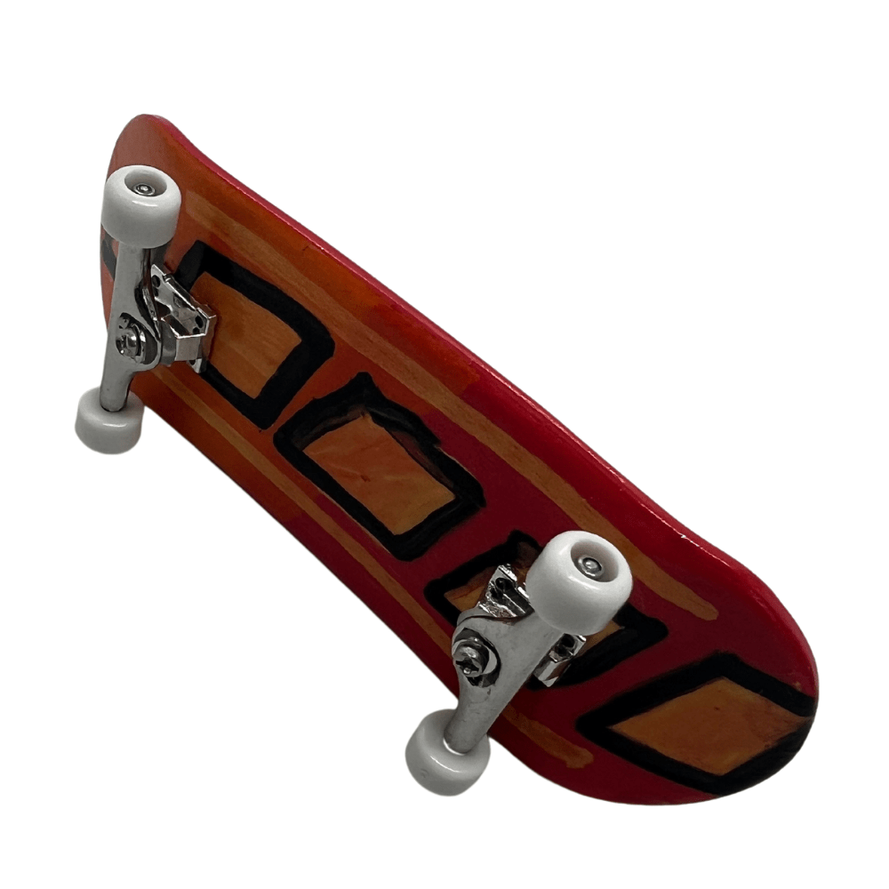 ‘Abstraction 1.3’ Artist Professional Handmade Fingerboard 34mm x 98mm complete with steel trucks and urethane bearing wheels and original design hand painted design on deck.