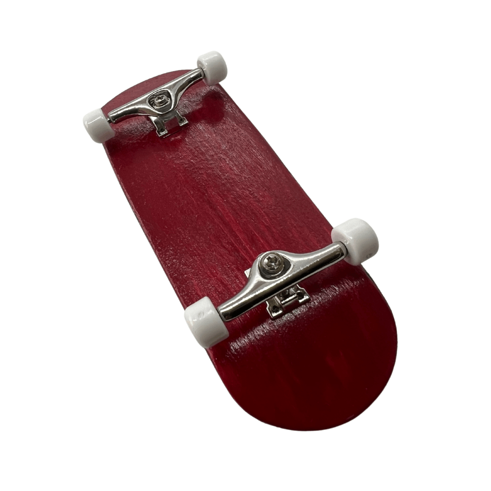 ‘Red’ Artist Professional Handmade Fingerboard 34mm x 97mm complete with steel trucks and urethane bearing wheels and red hand dyed deck.