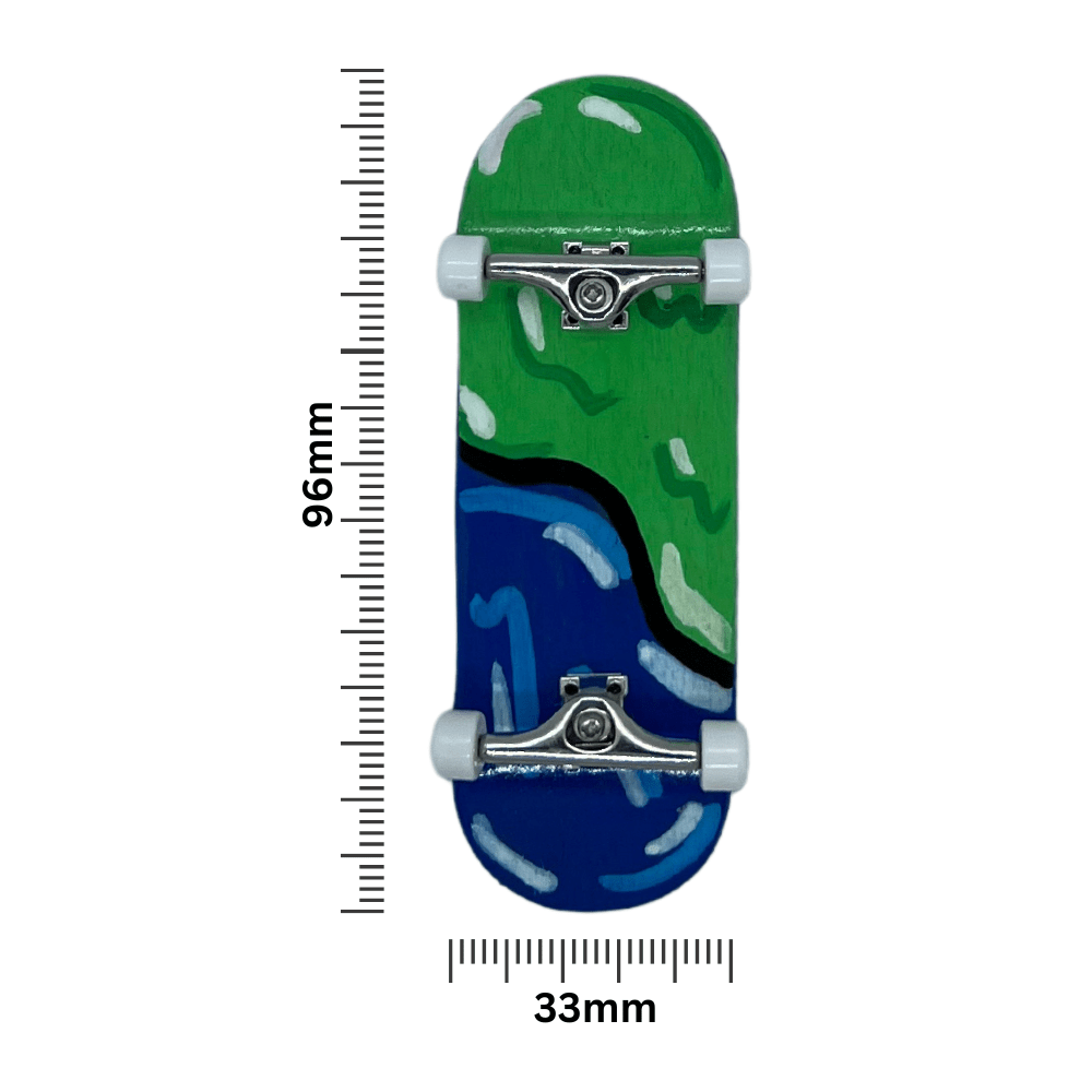 What’s in the box? 1 x Fingerboard complete, 1 x foam grip, 1 x tool, 1 x Artists’ Certificate of Authenticity (and lots of positive vibes)