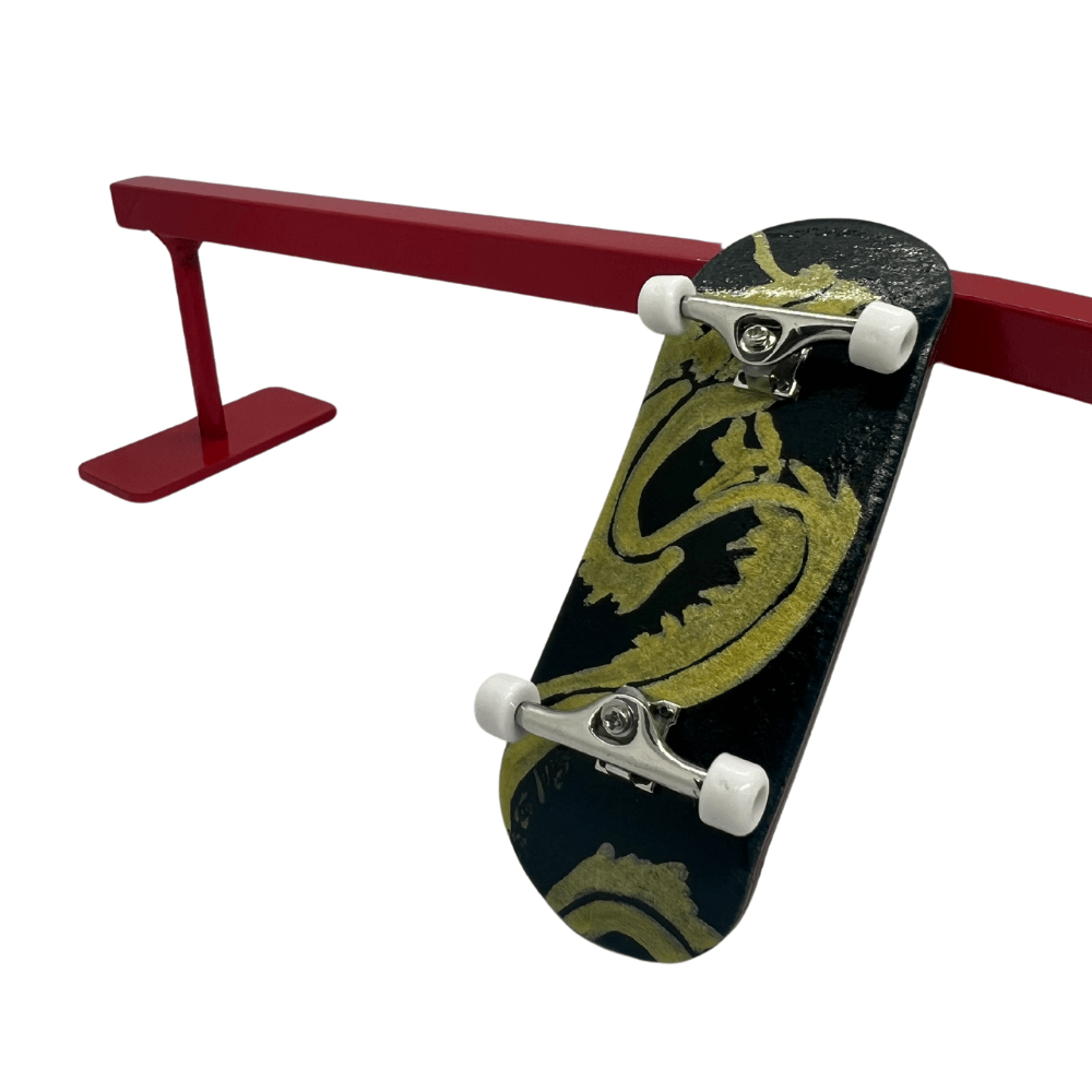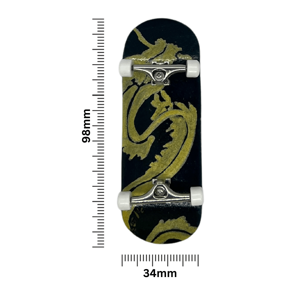 ‘Golden Dragon’ Artist Professional Handmade Fingerboard 34mm x 98mm complete with steel trucks and bearing wheels and original design hand painted design on deck.