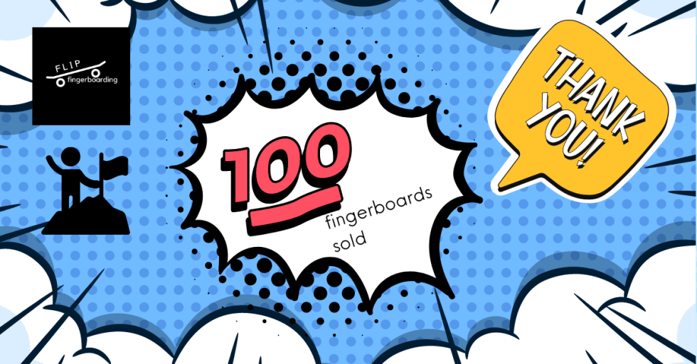 We’re happy to announce that Flip Fingerboarding has reached its milestone of selling over a 100 fingerboards. Thank you so much for reaching this milestone with us!