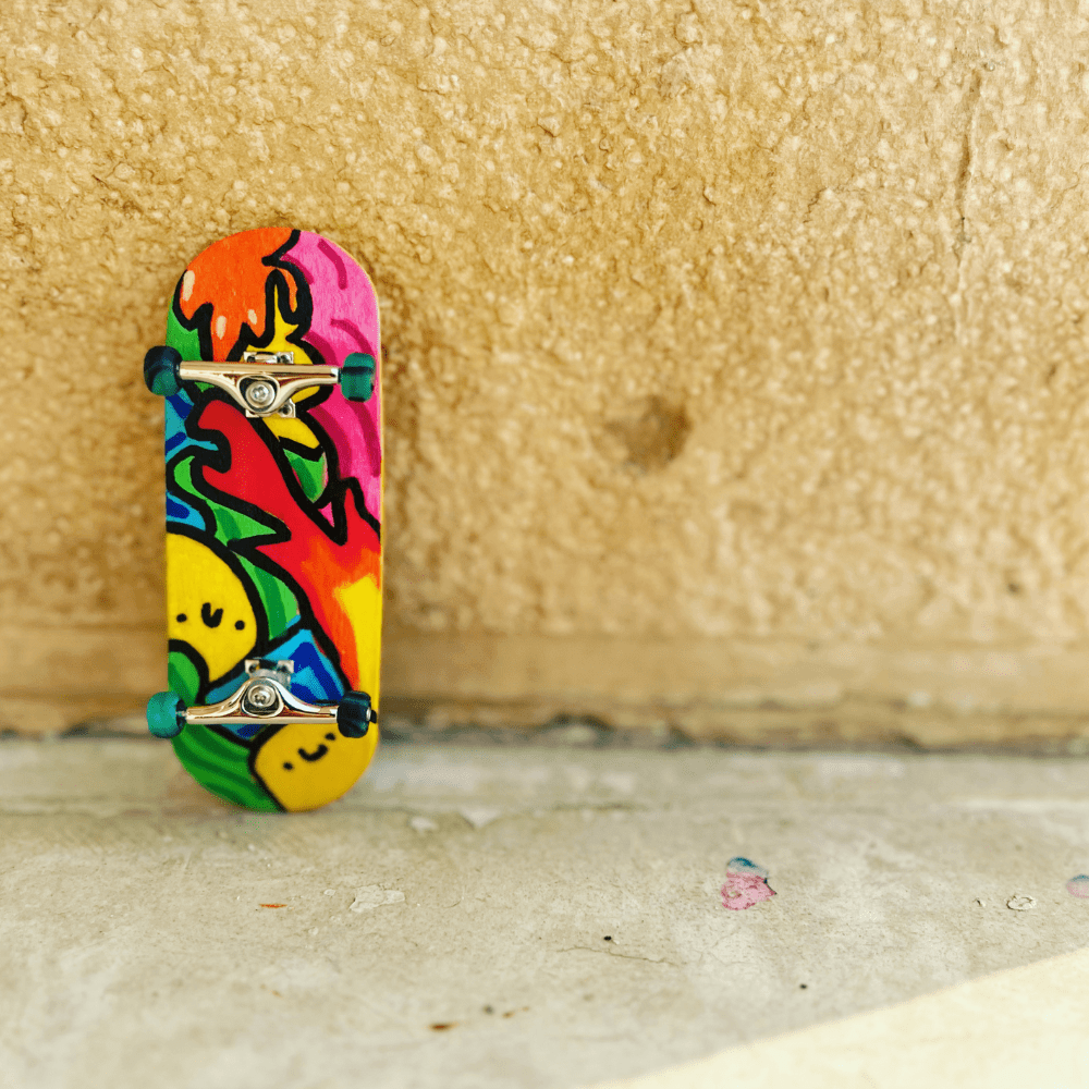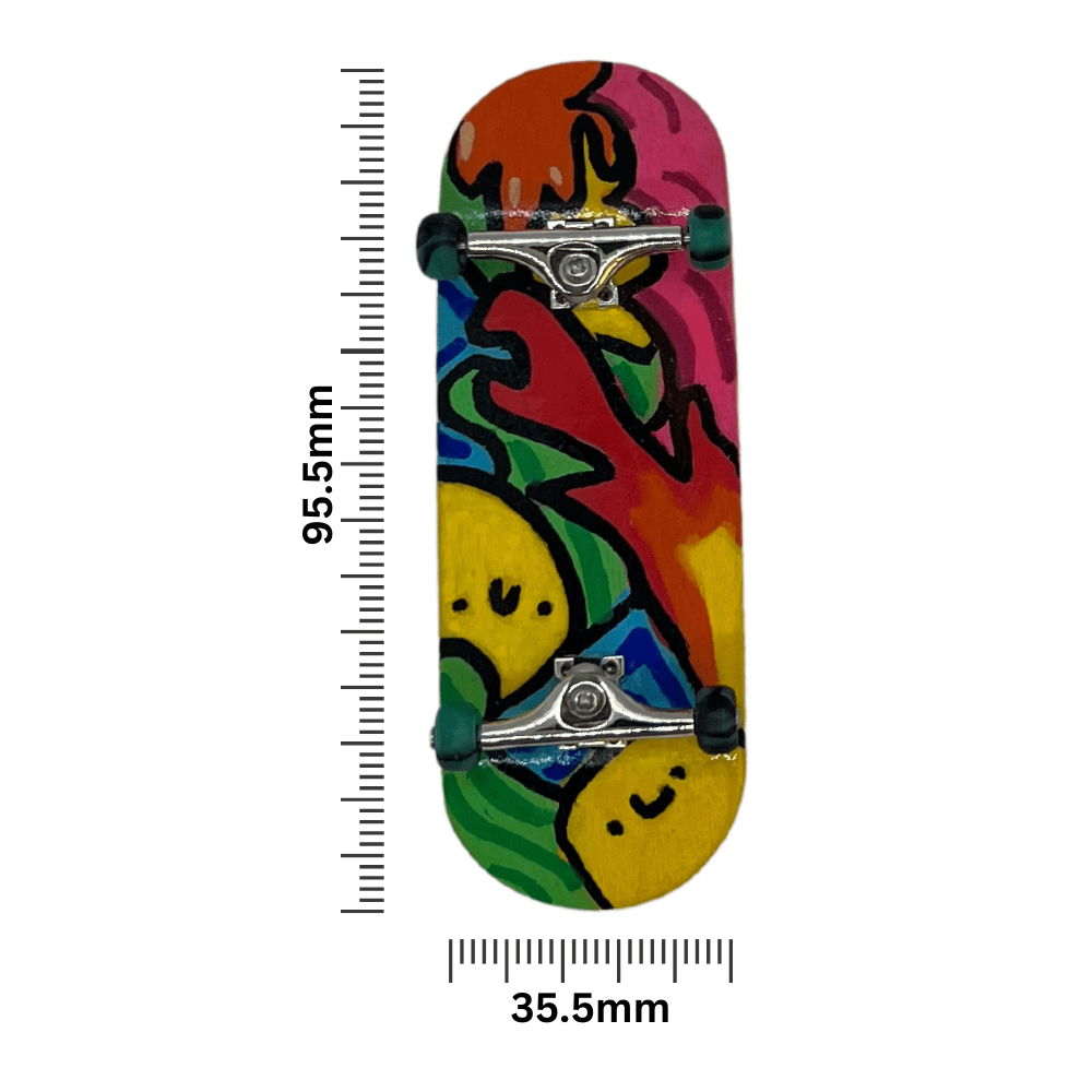 What’s in the box? 1 x Fingerboard complete, 1 x foam grip, 1 x tool, 1 x Artists’ Certificate of Authenticity (and lots of positive vibes)