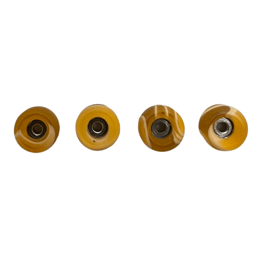 Special limited edition fingerboard swirl urethane bearing wheels yellow/white colour measuring 6.3mm x 3.4mm